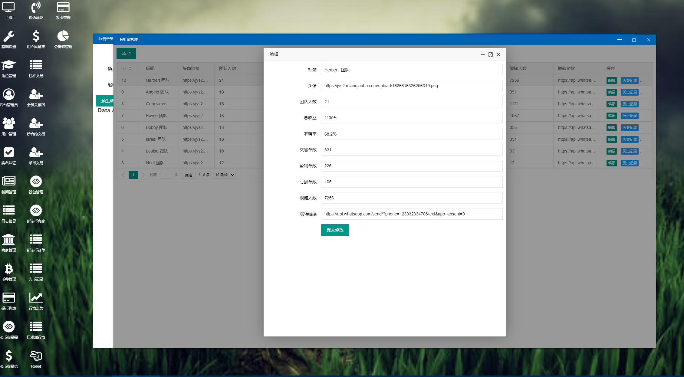 1、平台概况(实时行情、高端K线、合约交易、BI数据分析、币种统计、用户统计、交易统计、异常用户)