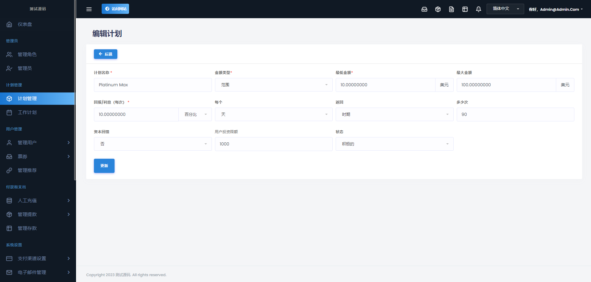 程序特色:极致性能、自适应、搜索引擎优化友好、时事通讯订阅、页面生成器、16+ 支付网关、计划管理、内容管理系统、电子邮件通知、注册奖励、多级推荐系统、电子邮件管理器、日程管理、多语言、存款和支付管理、支持票、信息仪表板、余额转介、2FA认证等多种功能