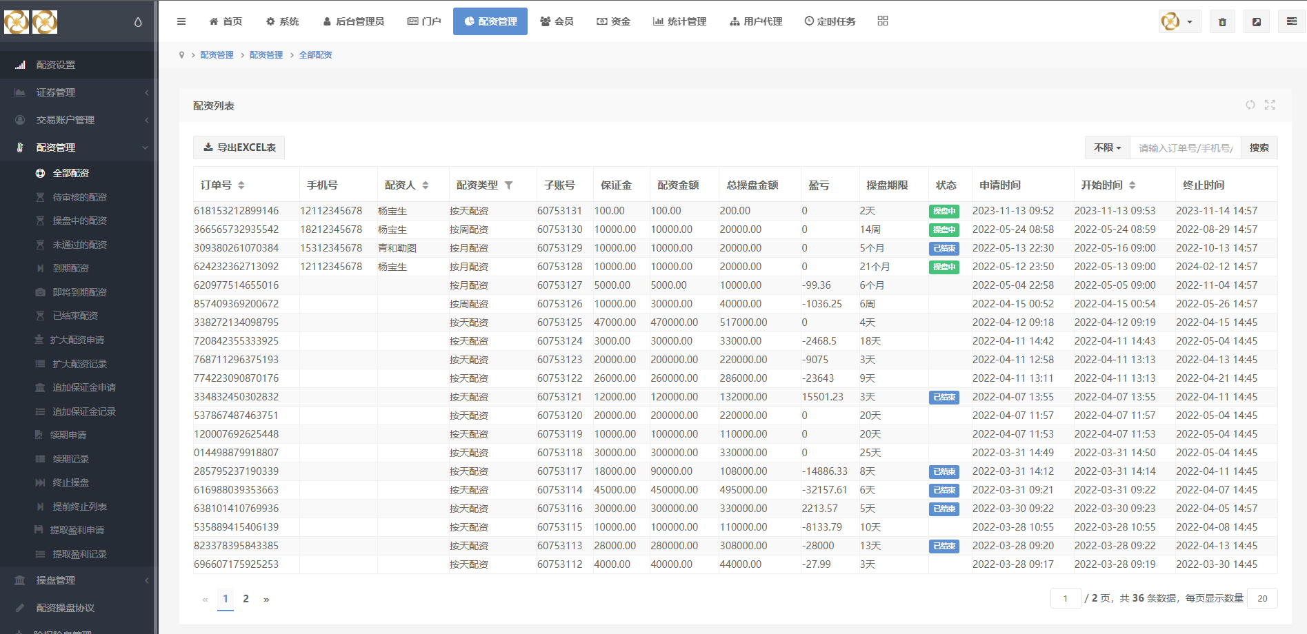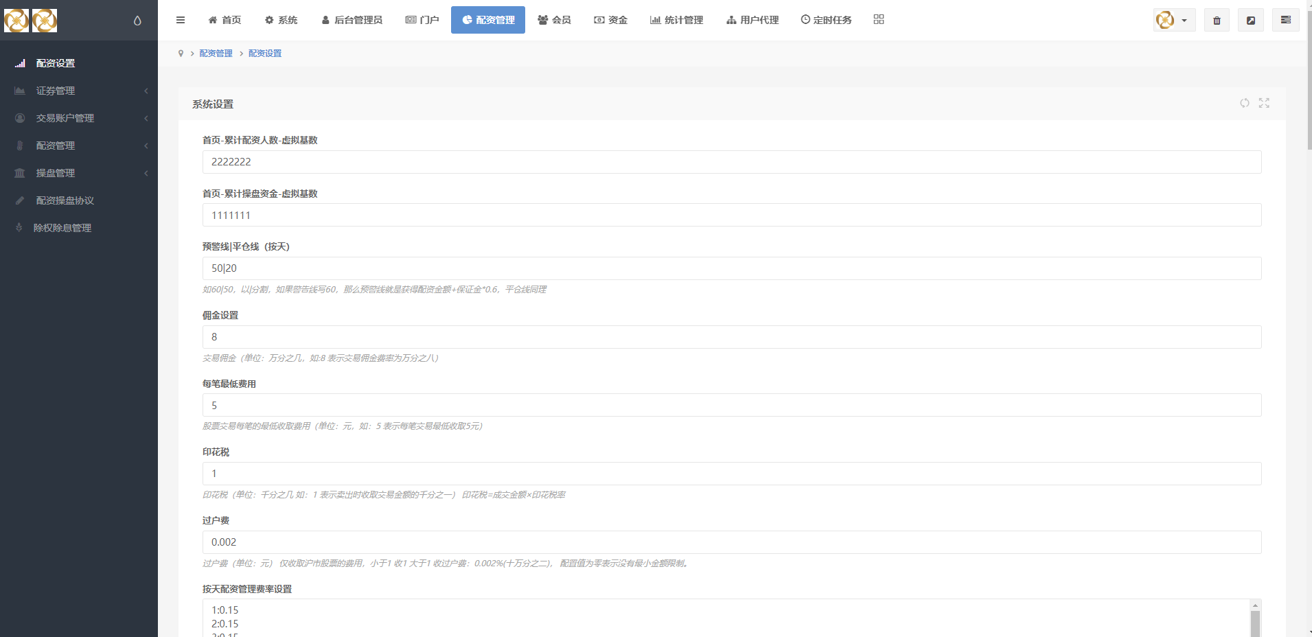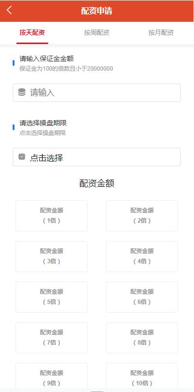 系统可直接1~10倍配资,后台可根据需求更改配资倍数