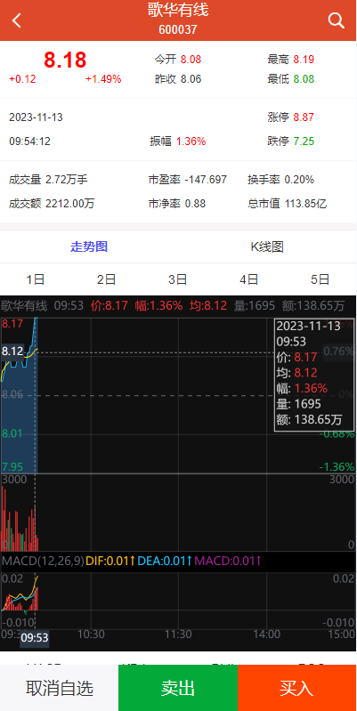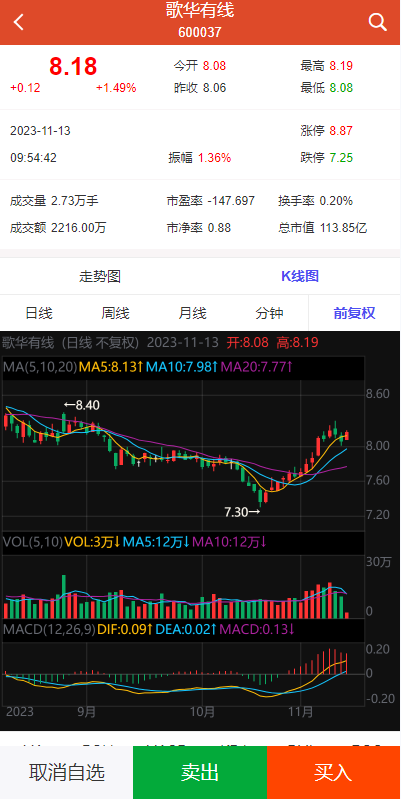 K线数据完整对接,分时走势正常