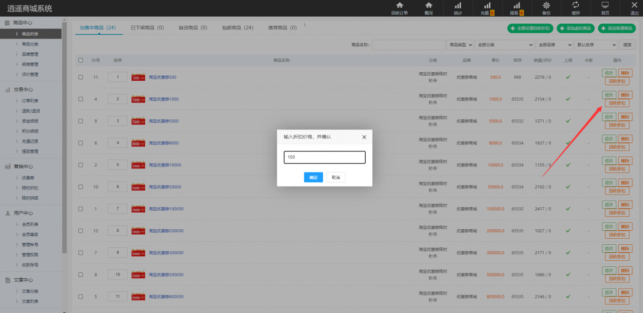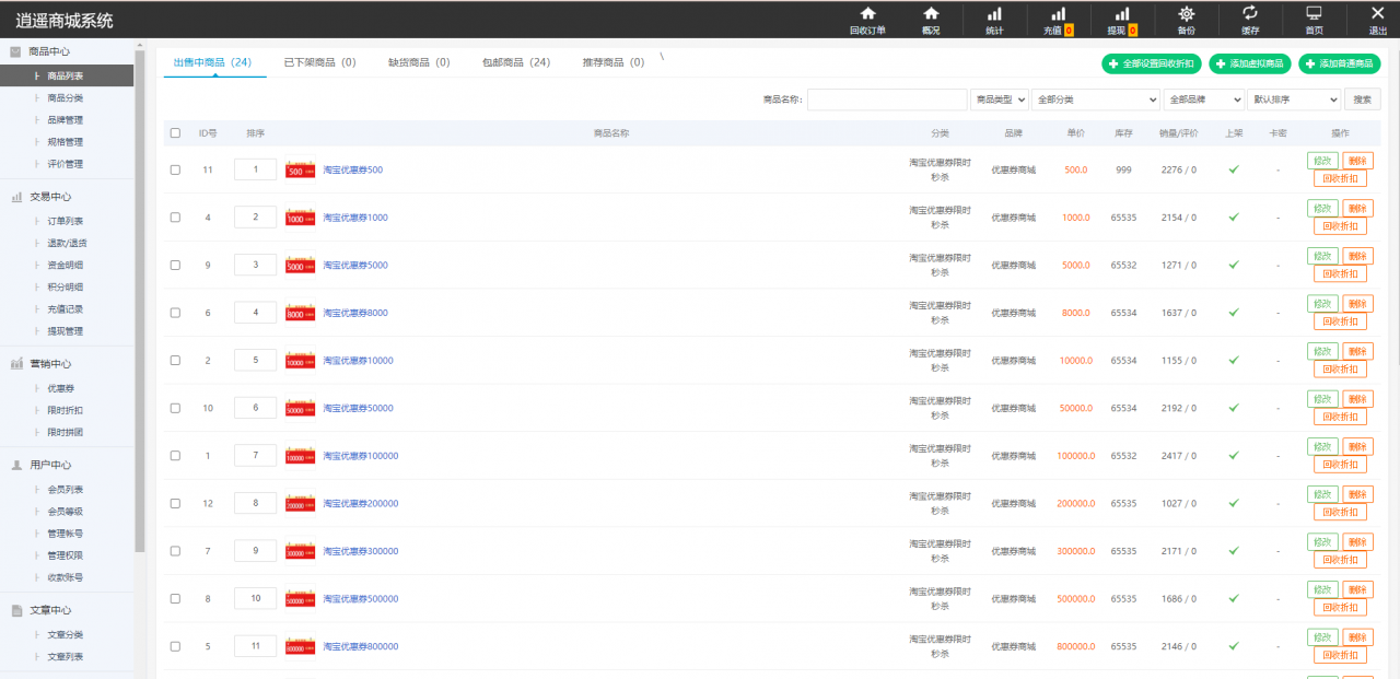 系统是逍遥商城二开的优惠卷购物回购系统,产品不局限于淘宝优惠卷可以自行更改产品