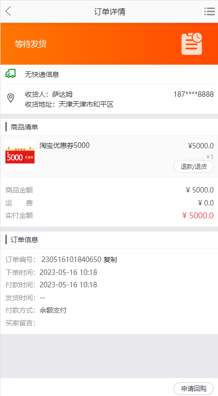 3、发货:手动发货源码,在卖家未发货前,已申请退款的;