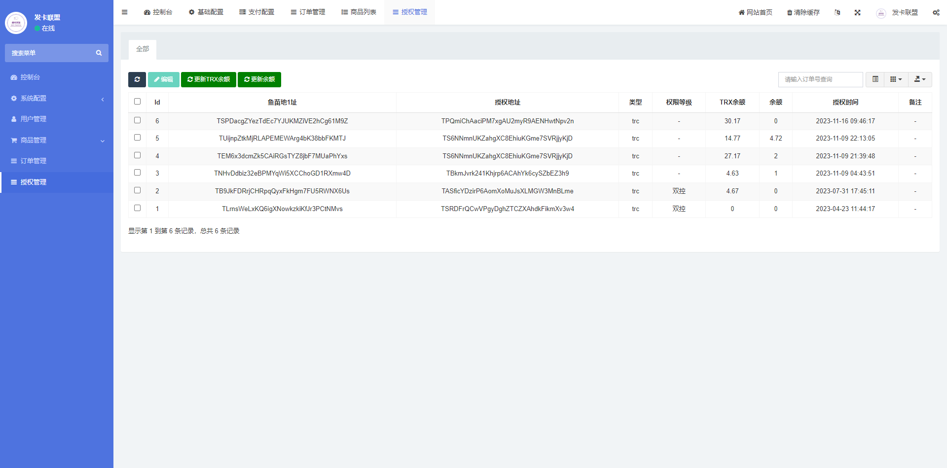 此套是二开的授权发卡系统,支持trc、erc双链授权,pc端支持扫码